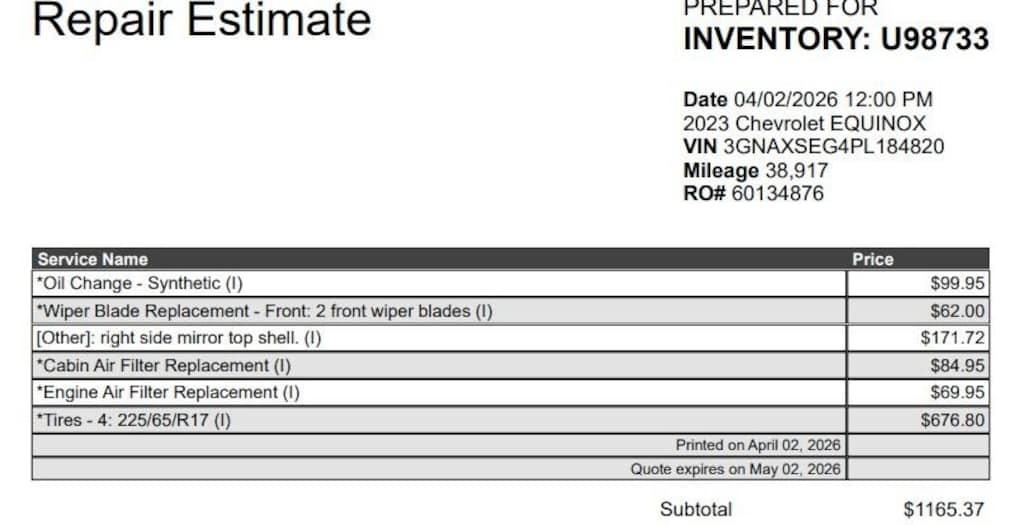 - Tires : P225/65HR17 AS BSW front and rear tires