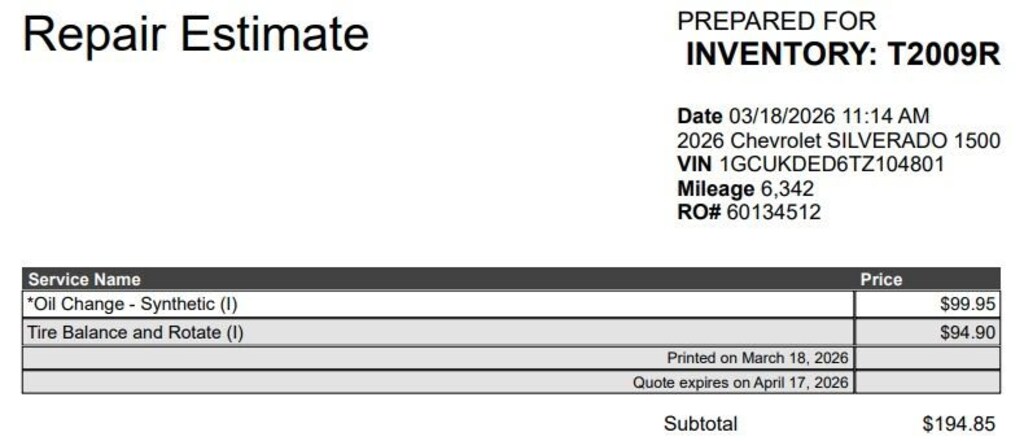 Riptide Blue Metallic 2026 Chevrolet Silverado 1500 LT LT1 4WD 10-Speed Automatic EcoTec3 5.3L V8Royal Motor Company is proud to offer this attractive-looking 2026 Chevrolet Silverado 1500 an absolutely gorgeous-looking Truck with the following Features: Convenience Package (10-Way Power Driver Seat with Lumbar, 120-Volt Bed Mounted Power Outlet, 120-Volt Interior Power Outlet, Dual Rear USB Ports (charge Only), Dual-Zone Automatic Climate Control, Heated Driver and Front Outboard Passenger Seats, Heated Steering Wheel, Keyless Open and Start, LED Cargo Area Lighting, Manual Tilt/Telescoping Steering Column, and Wrapped Steering Wheel), Liner Protection Package (LPO) (Rear Wheel House Liners), Preferred Equipment Group 1LT (12.3 Multicolor Reconfigurable Digital Display, 40/20/40 Front Split-Bench Seat, All-Star Edition, Auto-Locking Rear Differential, Bluetooth® For Phone, Chrome Mirror Caps, Cloth Seat Trim, Color-Keyed Carpeting Floor Covering, Deep-Tinted Glass, Electronic Cruise Control, EZ Lift Power Lock and Release Tailgate, Front Frame-Mounted Black Recovery Hooks, Front Rubberized Vinyl Floor Mats, HD Rear Vision Camera, Heated Power-Adjustable Outside Mirrors, Inside Rearview Mirror with Tilt, Integrated Trailer Brake Controller, OnStar Services Capable, Power Front Windows with Driver Express Up/Down, Power Front Windows with Passenger Express Down, Power Rear Windows with Express Down, Rear 60/40 Folding Bench Seat (folds Up), Rear Rubberized-Vinyl Floor Mats, SiriusXM with 360L Trial Subscription, Standard Tailgate, Steering Wheel Audio Controls, Teen Driver, Tire Pressure Monitoring System, Wheels: 17 x 8 Bright Silver Painted Aluminum, and Wi-Fi Hot Spot Capable), Remote Start Package (Electric Rear-Window Defogger, Remote Vehicle Starter System, and Theft Deterrent System (unauthorized Entry)), Standard Suspension Package, Trailering Package (Hitch Guidance), 170 Amp Alternator, 220 Amp Alternator, 3.23 Rear Axle Ratio, 4-Wheel Disc Brakes, 6 Speakers, 6-Speaker Audio System, ABS brakes, Air Conditioning, Alloy wheels, AM/FM radio: SiriusXM with 360L, Apple CarPlay/Android Auto, Auto High-beam Headlights, Automatic Emergency Braking, Automatic temperature control, Auxiliary External Transmission Oil Cooler, Brake assist, Bumpers: chrome, Compass, Delay-off headlights, Driver door bin, Driver vanity mirror, Dual front impact airbags, Dual front side impact airbags, Electronic Stability Control, Emergency communication system: OnStar, External Engine Oil Cooler, Following Distance Indicator, Forward Collision Alert, Front anti-roll bar, Front Center Armrest w/Storage, Front dual zone A/C, Front License Plate Kit, Front Pedestrian Braking, Front reading lights, Front wheel independent suspension, Fully automatic headlights, Heated door mirrors, Heated front seats, Heated steering wheel, Illuminated entry, IntelliBeam Automatic High Beam on/Off, Lane Keep Assist with Lane Departure Warning, Low tire pressure warning, Occupant sensing airbag, Outside temperature display, Overhead airbag, Overhead console, Panic alarm, Passenger door bin, Passenger vanity mirror, Power door mirrors, Power driver seat, Power steering, Power windows, Premium audio system: Chevrolet Infotainment 3 Premium, Radio data system, Radio: Chevrolet Infotainment 3 Premium System, Rear reading lights, Rear step bumper, Rear window defroster, Remote keyless entry, Security system, Speed control, Speed-sensing steering, Split folding rear seat, Steering wheel mounted audio controls, Tachometer, Telescoping steering wheel, Tilt steering wheel, Traction control, Trip computer, Variably intermittent wipers, Voltmeter, and Wheels: 18 x 8.5 Bright Silver Painted Aluminum. Recent Arrival!