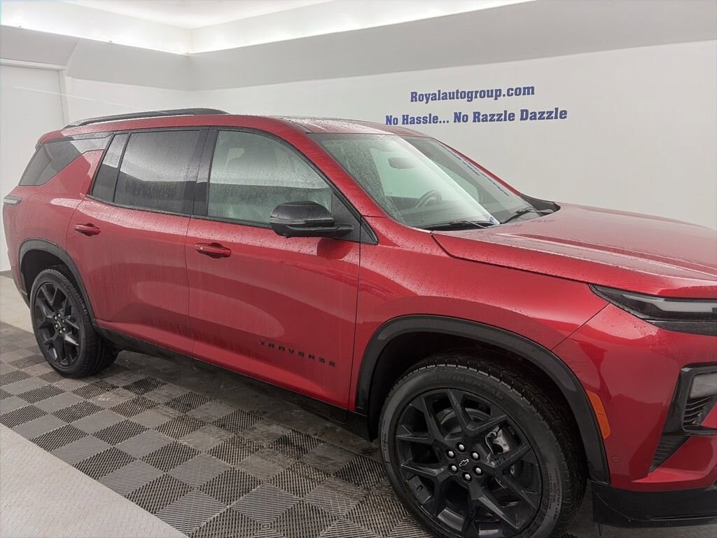 Radiant Red Tintcoat 2026 Chevrolet Traverse RS AWD 8-Speed Automatic 2.5L DOHCRoyal Motor Company is proud to offer this good-looking 2026 Chevrolet Traverse a truly fantastic-looking SUV with the following Features: 12 Speakers, 3rd row seats: split-bench, 4-Wheel Disc Brakes, 6-Way Power Front Passenger Seat Adjuster, 8-Way Power Driver Seat Adjuster, ABS brakes, Air Conditioning, Alloy wheels, AM/FM radio: SiriusXM with 360L, Apple CarPlay/Android Auto, Auto High-beam Headlights, Auto tilt-away steering wheel, Auto-dimming door mirrors, Automatic temperature control, Bose Premium 12-Speaker Audio System Feature, Brake assist, Bumpers: body-color, Child-Seat-Sensing Airbag, Compass, Delay-off headlights, Driver 4-Way Power Lumbar Seat Adjuster, Driver door bin, Driver vanity mirror, Dual front impact airbags, Dual front side impact airbags, Electronic Stability Control, Emergency communication system: OnStar, Exterior Parking Camera Rear, Four wheel independent suspension, Front anti-roll bar, Front Bucket Seats, Front Center Armrest, Front dual zone A/C, Front Passenger 4-Way Power Lumbar Seat Adjuster, Front reading lights, Fully automatic headlights, Garage door transmitter, Heated door mirrors, Heated Driver and Front Passenger Seats, Heated front seats, Heated rear seats, Heated steering wheel, Illuminated entry, Low tire pressure warning, Memory seat, Navigation System, Occupant sensing airbag, Outside temperature display, Overhead airbag, Overhead console, Panic alarm, Passenger door bin, Passenger vanity mirror, Perforated Leather-Appointed Seat Trim, Power door mirrors, Power driver seat, Power Liftgate, Power passenger seat, Power steering, Power windows, Radio data system, Radio: : Audio System w/17.7 Diagonal Display, Rain sensing wipers, Rear air conditioning, Rear anti-roll bar, Rear reading lights, Rear window defroster, Rear window wiper, Remote keyless entry, Security system, SiriusXM with 360L Trial Subscription, Speed control, Speed-sensing steering, Spoiler, Sport steering wheel, Steering wheel memory, Steering wheel mounted audio controls, Tachometer, Telescoping steering wheel, Tilt steering wheel, Traction control, Trip computer, Turn signal indicator mirrors, Variably intermittent wipers, Ventilated Driver and Front Passenger Seats, Ventilated front seats, Voltmeter, and Wheels: 22 High Gloss Black Painted Aluminum. Recent Arrival!